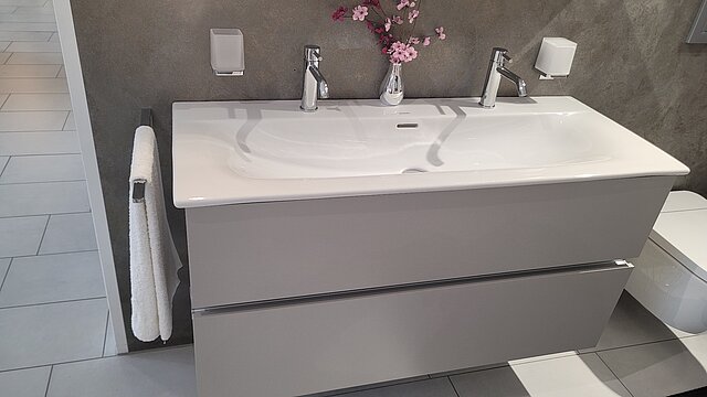 inkl. Unterschrank in Farbe seidengrau mit einem Auszug